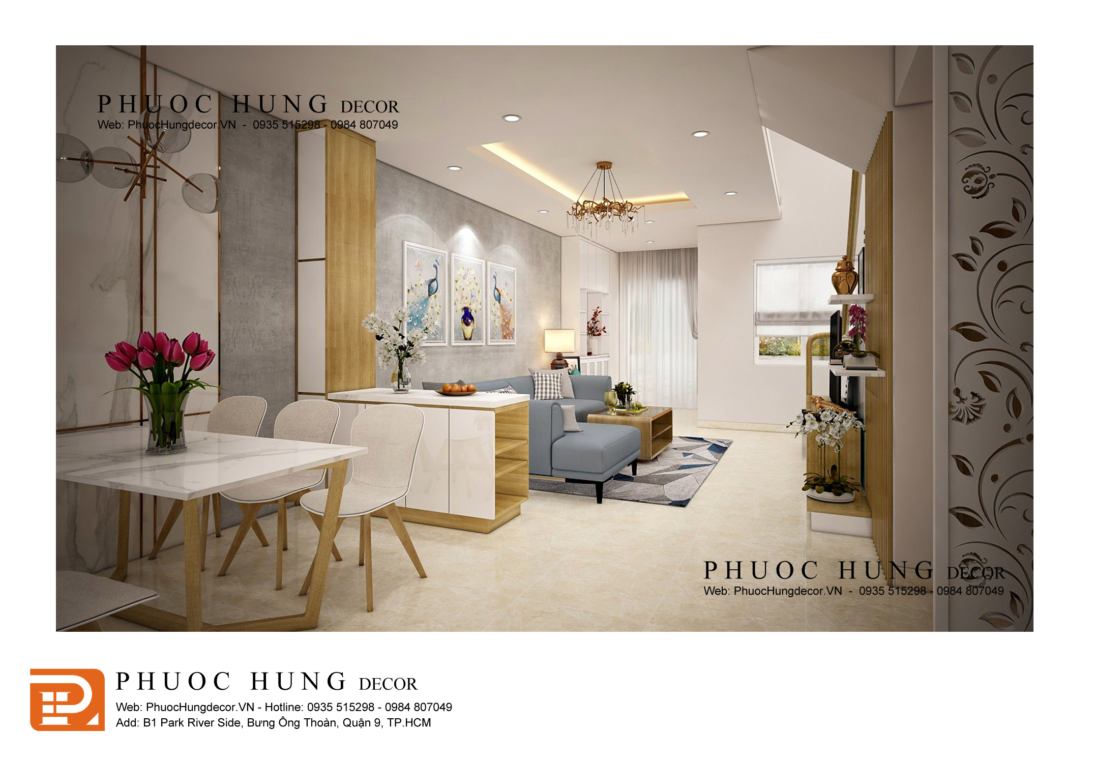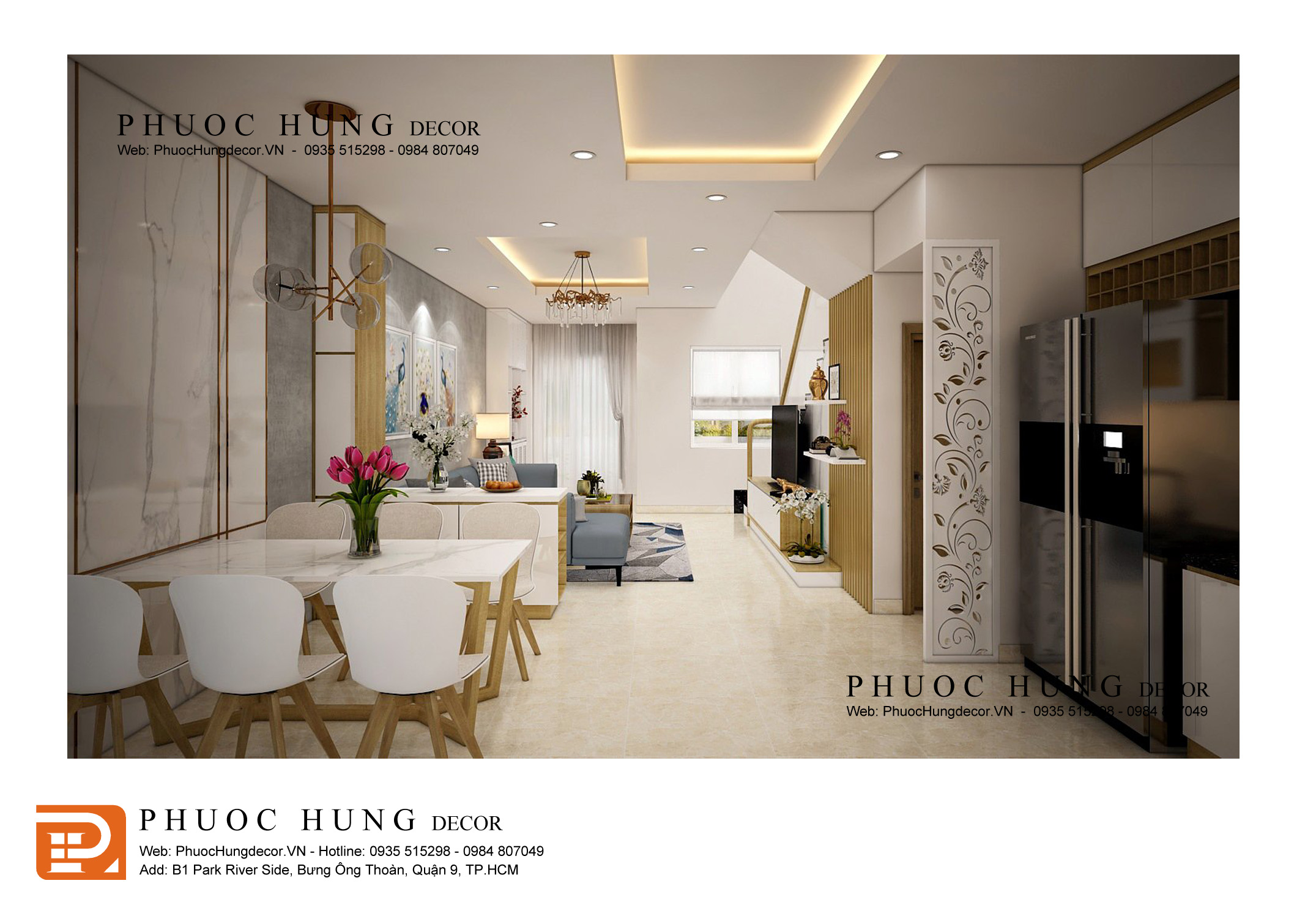 THIẾT KẾ THI CÔNG CẢI TẠO NỘI THẤT PHÒNG KHÁCH - BẾP NHÀ PHỐ C37 PARK RIVERSIDE